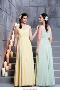 One of the most striking bridal trends to emerge in recent years is the mixing together of colours or styles. Not all your bridesmaids ‘match’ in terms of age, colouring, height, shape or personal style and so it makes perfect sense to have each bridesmaid wear a gown they know they will both look amazing in and feel comfortable wearing all day. They may even get to wear it again for future special occasions.